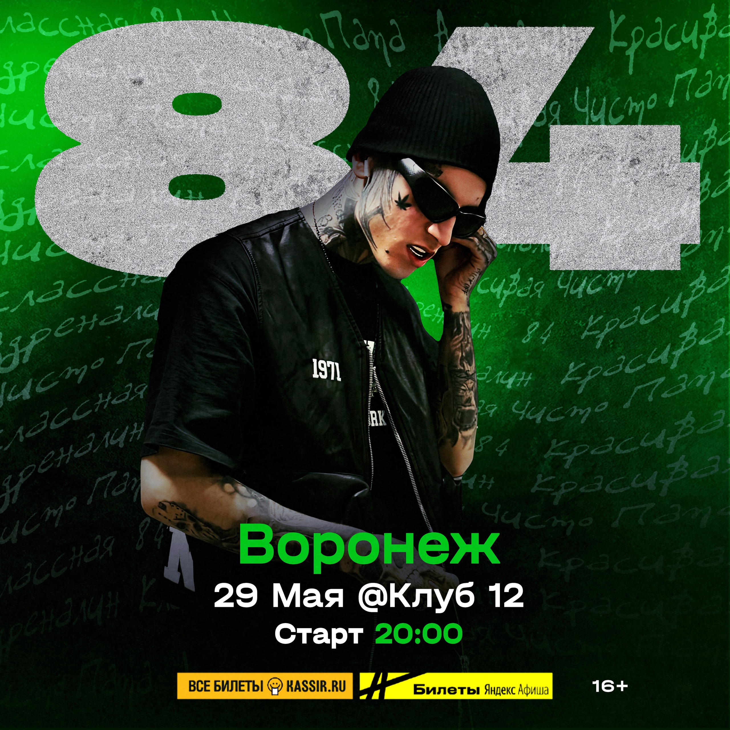 29 мая 2025 года в клубе «12» города Воронежа пройдёт выступление исполнителя «84» с презентацией нового альбома.